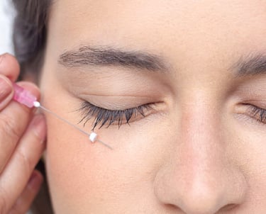 Sua aplicação nas pálpebras auxiliam no estímulo a produção de colágeno, sendo um ótimo complemento para o rejuvenescimento palpebral e facial.