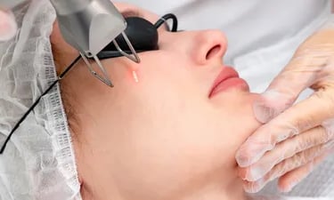 O laser de Co2 pode ser usado para ser aplicado em toda a pálpebra e face para estímulo de colágeno e melhora de manchas e linhas finas, ainda durante a cirurgia.